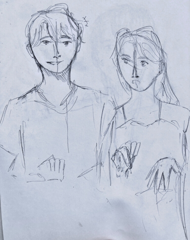 Image description | A pencil sketch of the two leads |