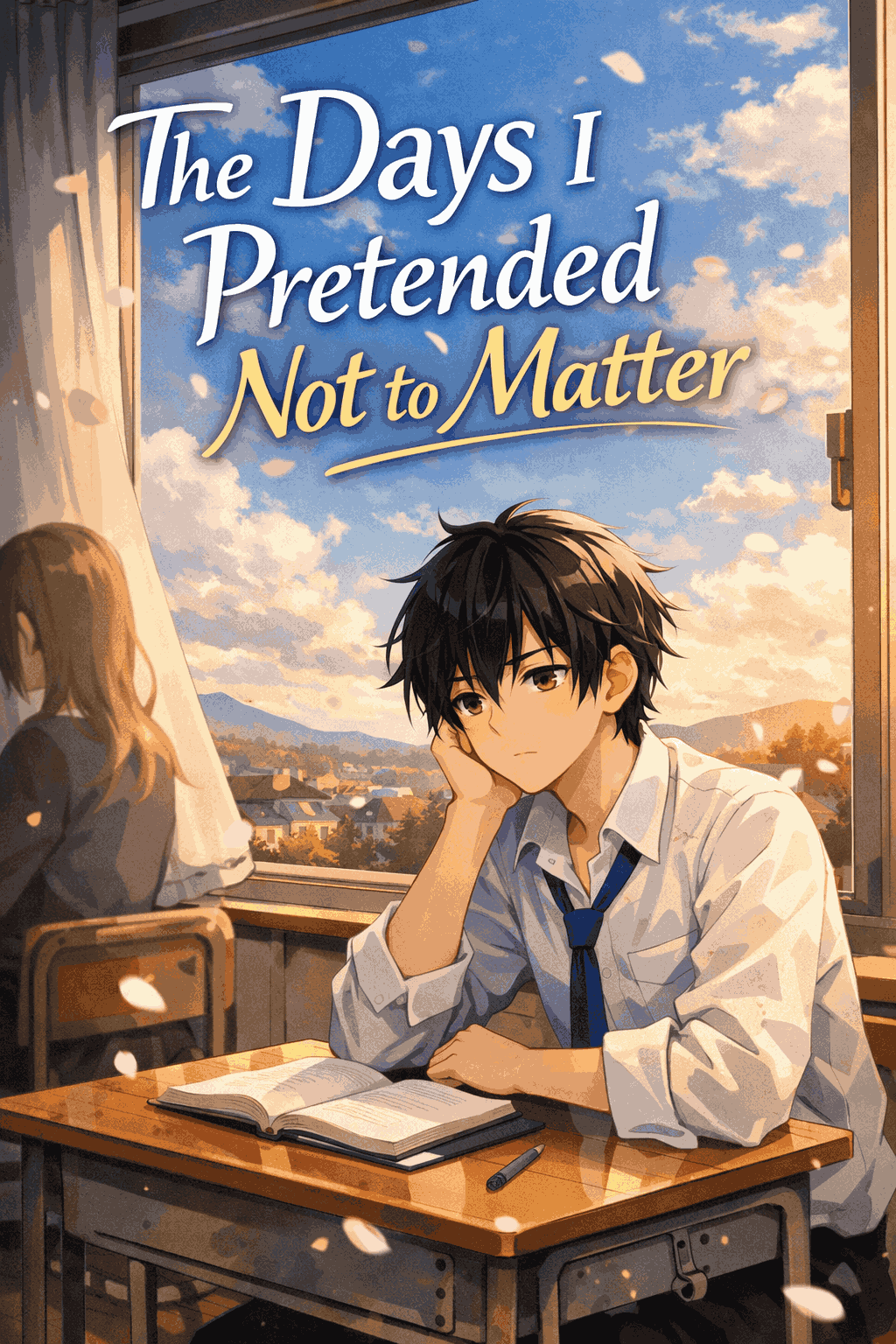 | Novel | This image was uploaded for this novel: NEW! 6 “The Days I Pretended Not to Matter”A quiet high school boy who lives unnoticed begins seeing people grow lighter when no one truly sees them. As classmates fade and one vanishes, he must risk being seen himself, learning that existing hurts—but disappearing hurts more. |
