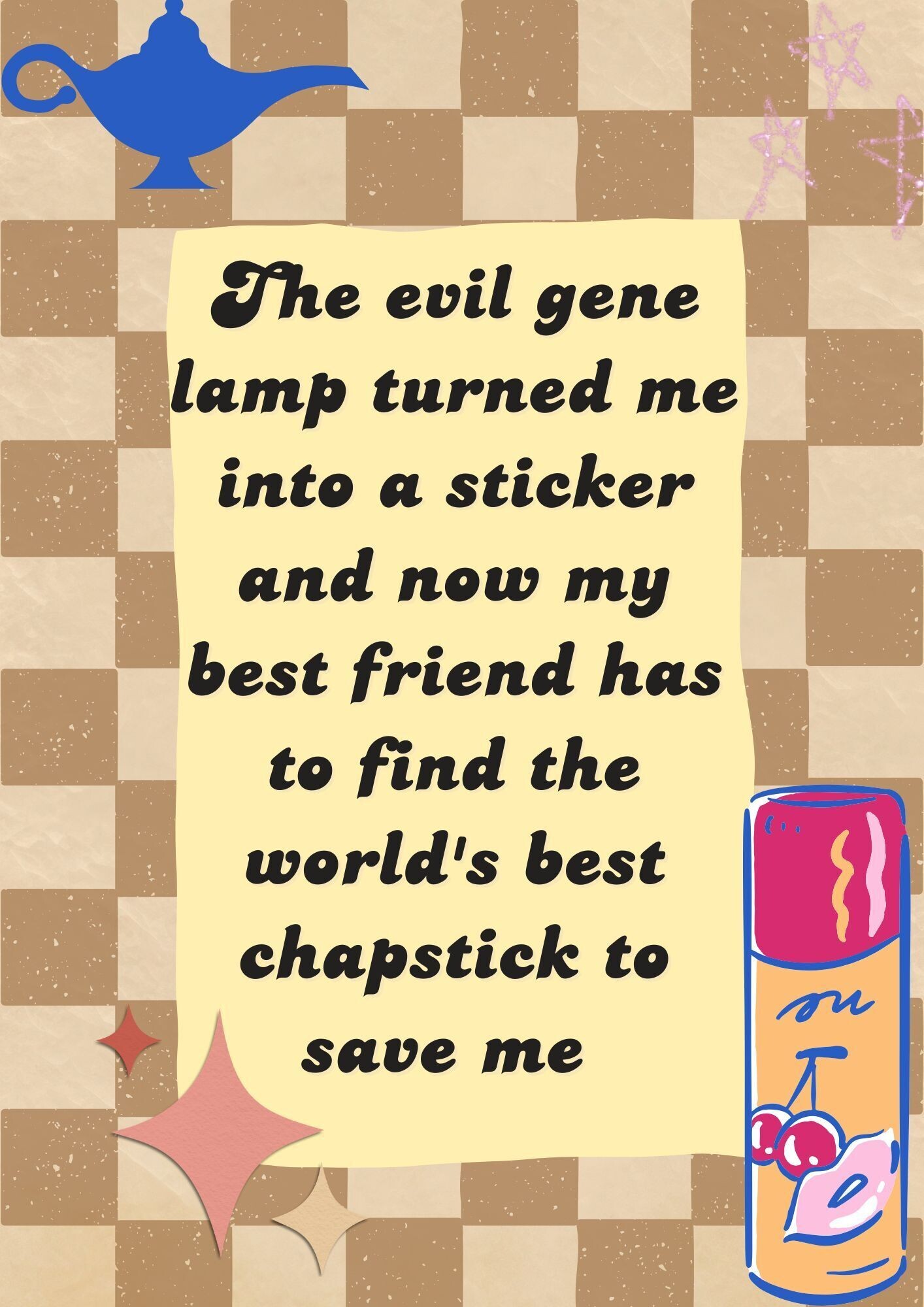 | Novel | This image was uploaded for this novel: NEW! 13 The evil gene lamp turned me into a sticker and now my best friend has to find the world's best chapstick to save meSometimes you need a real one by your side. Life is about learning from one's mistakes. |